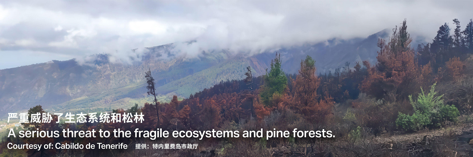 西班(ban)牙加那利群島(dao)中(zhong)最(zui)大的(de)(de)島(dao)嶼--特(te)內(nei)里費(fei)島(dao),在這(zhe)個(ge)被聯合國教科(ke)文組(zu)織列為世界遺(yi)產的(de)(de)地方,古老的(de)(de)綠(lv)色與火山(shan)地貌相融合,陽光穿透薄霧籠(long)罩的(de)(de)山(shan)巒,延伸至(zhi)連綿(mian)的(de)(de)松林(lin)。然而,由于炎熱的(de)(de)氣候和(he)松林(lin)的(de)(de)組(zu)合,這(zhe)種美麗的(de)(de)風景很(hen)容易(yi)發生森林(lin)火災。